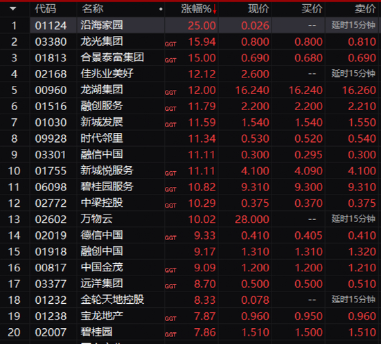 港股科技股、地产股大幅上涨。地产及地产相关的物业股普遍大幅拉升,龙光集团、合景泰富集团、融创服务、龙湖集团、万物云等纷纷涨超10%。