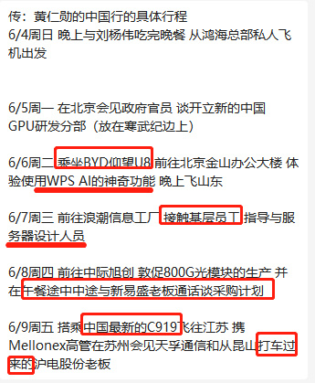 知情人士透露,黄仁勋计划到访游戏巨头腾讯和字节跳动、电动汽车制造商理想汽车和比亚迪汽车,以及小米等科技公司。黄仁勋行程尚未最终确定,后续细节可能出现变动。