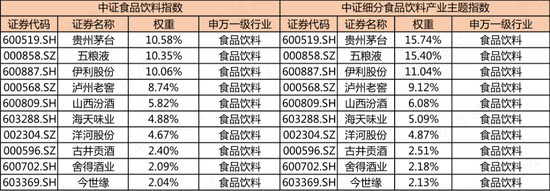 酒类和食品饮料类ETF都是以白酒个股为核心