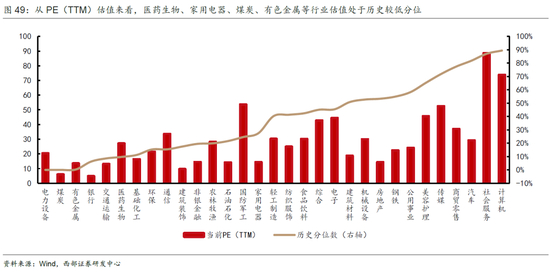 医药生物、家用电器、煤炭、有色金属等行业估值处于历史较低分位数,具有较大修复空间。从PE(TTM)估值来看,截至6月14日,消费板块的医药生物(27.15)、农林牧渔(28.22)、家用电器(14.39)等行业持仓比例分别处于2010年以来历史较低的9.70%分位数、19.90%分位数和27.50%分位数,顺周期板块的煤炭(6.06)、有色金属(13.53)、银行(4.83)、交通运输(13.09)、基础化工(16.42)等行业持仓比例分别处于历史较低的0%分位数、0.30%分位数、6.20%分位数、8.60%分位数和11.20%分位数,估值仍有较大修复空间。