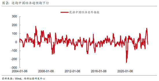 近期经济数据反映国内经济复苏不及预期。5月经济数据陆续公布,显示经济复苏不及预期,花旗中国经济意外指数从4月13日的高点162.3快速回落到6月8日的-25.5,不到2个月时间下降了187.8点,类似的经济数据超预期下行情况近年来仅发生在两次国内疫情的反复时,即2020年2月和2022年4月。