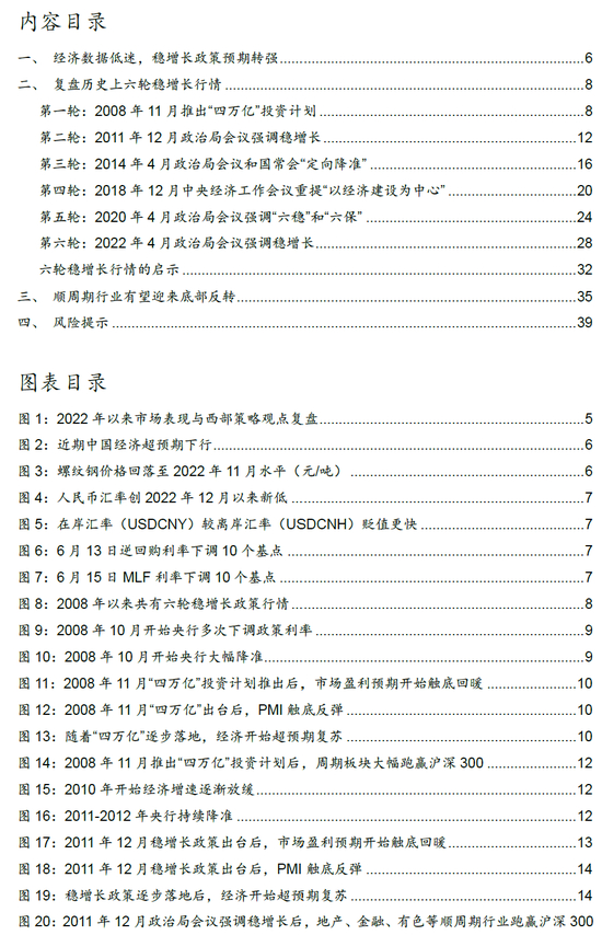 在近期稳增长政策加码预期持续提升的背景下,我们复盘了2008年以来的六轮稳增长行情,其行情启动的标志分别为: