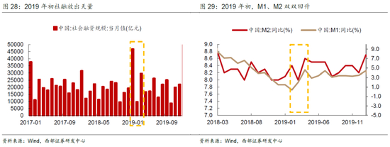 2018年12月,中央经济工作会议重提“以经济建设为中心”。11月1日民企座谈会召开,要求减轻民企税费负担、解决民企尤其是中小企业融资难融资贵问题。12月19日至21日中央经济工作会议召开并重提“以经济建设为中心”,强调“强化逆周期调节”,要求“实施更大规模的减税降费,较大幅度增加地方政府专项债券规模”,“解决好民营企业和小微企业融资难融资贵问题”,并定调“金融是实体经济的血脉”、“资本市场在金融运行中具有牵一发而动全身的作用”将资本市场地位拔升至前所未有的高度。随即2019年初社融放出天量,M1、M2双双回升。政策宽松下,2019年初市场迎来大涨。