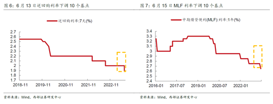 经济下行的背景下,近期货币政策开始边际宽松。6月13日央行公开市场逆回购(OMO)中标利率下降10个基点至1.9%,6月15日,央行进行2370亿元1年期MLF操作,对冲当日到期的2000亿元MLF,实现净投放370亿元;中标利率下调10个基点下调至2.65%,后续贷款市场报价利率(LPR)有望跟随下调。