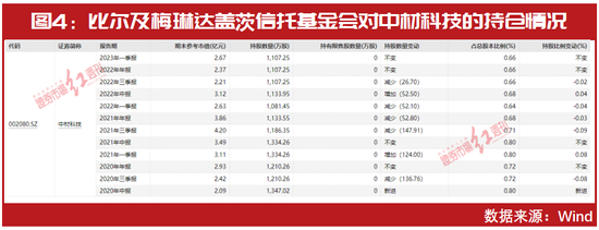 “中字头”公司中材科技则长期得到了美国前首富比尔·盖茨的青睐,自2020年二季度末至今年一季度末,比尔及梅琳达盖茨信托基金会始终位居公司前十大股东之列(见图4)。