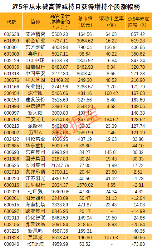 高管近5年从未减持还大举增持股揭秘