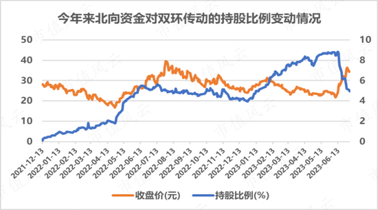 对于双环传动,北向早在2021年底其股价还在低位时就开始埋伏,整个2022年下半年持股变化不大,到了2023年2月其股价大幅回调,北向再次抄底,最高持股比例高达8.85%,最近又精准减持近4个百分点,吃肉美滋滋。
