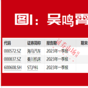 今年一季度末,吴鸣霄共现身于海马汽车、秦川机床、ST沪科3家公司的前十大股东/流通股东阵营,累计公开持仓1.95亿元(见图1)。