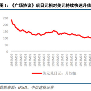自1985年美、日等五国签署《广场协议》以来,日元对美元持续快速升值,日元价格从1985年9月的1美元兑237.2日元上升至1995年6月的1美元兑84.5日元。日本的出口贸易遭受巨大打击,1986-1987年日本出口总值连续负增长。为刺激经济走出困局,日本央行开始采取宽松的货币政策和金融自由化改革,基准利率由5.0%下降至 2.5%。在缺乏监管和宽松政策的影响下,大量银行信贷和外资资本进入日本股市和房地产市场,日本私营非金融部门杠杆率快速上涨;股价和房价快速攀升,资产泡沫开始积累。