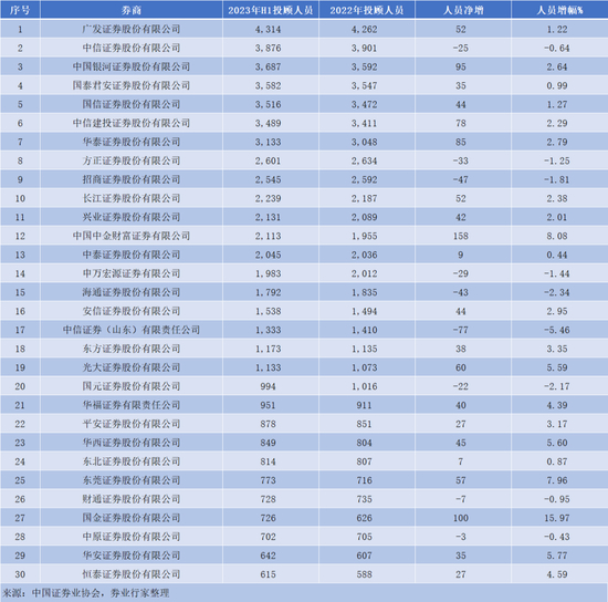 2023券业人员变动榜!投顾增员最多,分析师增幅最大
