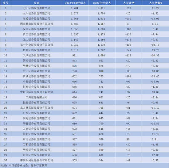 正值上市券商中报季,行家通过中证协从业人员数据,对2023年中期券商人员现状进行了统计。