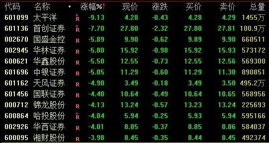 券商板块今日大幅跳水,本轮行情“领头羊”太平洋大跌逾9%,盘中一度触及跌停;昨日刚创出新高的首创证券跌近8%,国盛金控、华林证券、华鑫股份、中银证券等跌超5%。