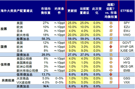 图表:9月海外资产配置建议