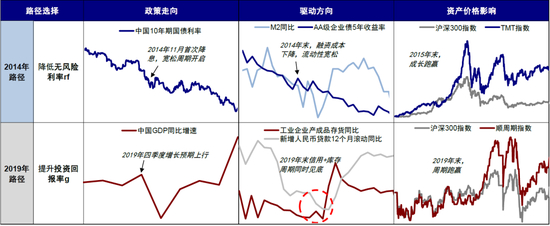 图表:两条出路:2014(降低融资成本 )vs. 2019(提高投资回报率)
