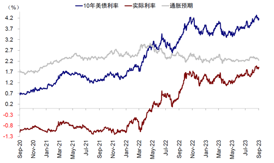 基于这一考虑,我们判断9月不加息是大概率,11月加息可能性存在但充分预期后也不会造成太大扰动(当前CME利率期货预计9月不加息概率为94%,11月加息25bp概率为34%)。因此,我们维持对美债利率上有顶,但下行空间暂时无法打开太多的判断,9月中旬通胀数据若如预期大幅回落甚至超预期回落,将提供阶段性的显著交易性机会,值得关注。