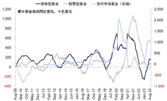 图表:8月,债券型基金、股票型基金、货币市场基金均流入放缓