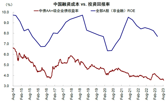 图表:中国未来的出路与信号来自大规模降融资成本、或宽信用提振投资回报率