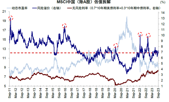 我们在8月配置月报《美债有顶,港股有底:海外资产配置月报(2023-8)》中提示,中美两地市场可能都会呈现围绕中枢宽幅震荡的镜像情景,只不过,美债和美股如果出现较大回调可以重新介入,而中国市场的上涨还需要更多政策配合。回顾来看,8月的市场走势也的确如此,虽然过程中的振幅比我们想象的要大:不论是美债利率冲高4.3%,还是中国市场一度创去年底以来新低。但这并不妨碍大的判断,精准把握因为情绪和交易因素造成的对趋势的突破并不现实,但只要大的趋势不变,当美债已经向上透支了因为供给增加产生的溢价(我们提示10年美债中枢在4%附近,参见8月20日《美股是否危险了?》和8月27日《美国6%的GDP意味着什么?》),当港股已经向下破净而政策还在不断推出(我们提示港股支撑位在18000点左右,参见8月20日《市场再度逼近支撑位》),反而都会提供给更好的介入时机。