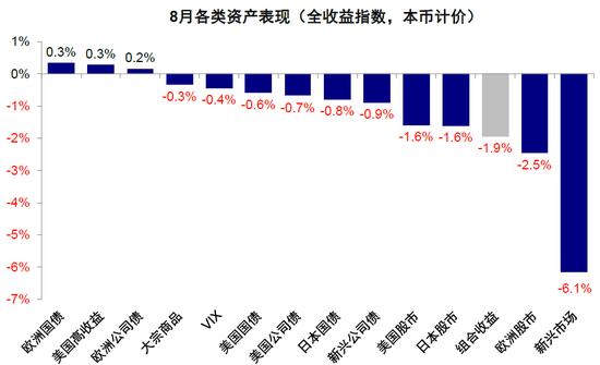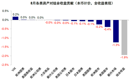 图表:8月,新兴市场和美股为组合贡献的主要拖累