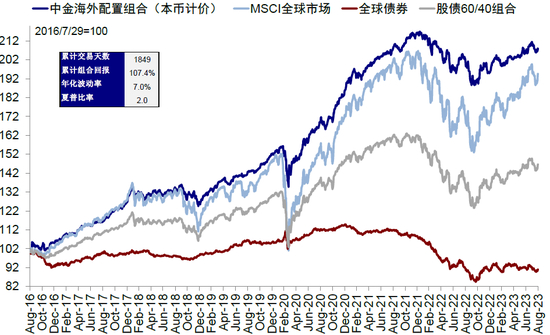 图表:8月,我们的海外资产配置组合下跌1.9%(本币计价)