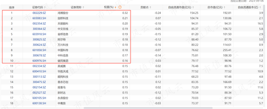 在个股配置上,中证2000比较分散,前十大重仓股占的权重不足2%,占比最高的鸿博股份仅为0.32%。