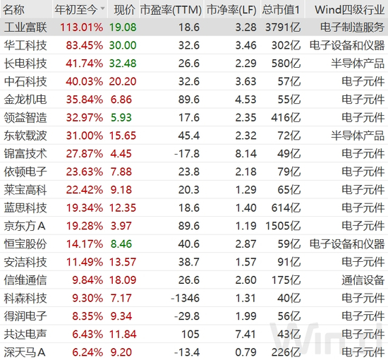概念股方面,工业富联以113.01%的涨幅排名第一;华工科技以83.45%的涨幅排名第二;长电科技、中石科技、金龙机电、领益智造、东软载波、锦富技术、依顿电子、莱宝高科等涨超20%。