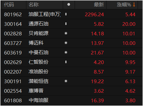 受中东局势紧张影响,黄金、原油价格近期持续走强,带动相关板块逆势升温。通源石油早盘20%幅度涨停,四川黄金、贝肯能源、中曼石油等均触及涨停。
