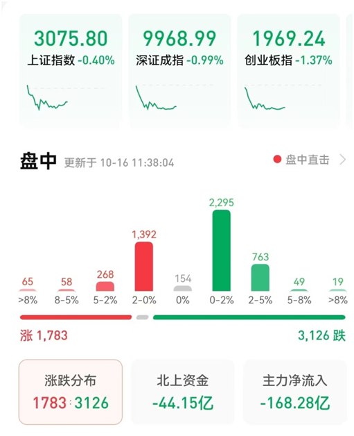 今日早盘,A股市场延续弱势格局。三大股指震荡走低,深证成指再度跌破万点大关,盘中最低探至9950.53点,创下年内新低。