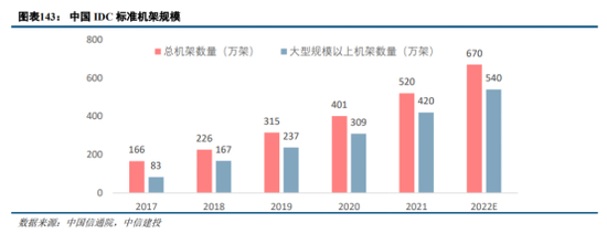 IDC:在数字中国和人工智能推动云计算市场回暖的背景下,IDC作为云基础设施产业链的关键环节,也有望进入需求释放阶段。在过去两年半,受多重因素影响下,云计算需求景气度下行,但IDC建设与供给未出现明显放缓,2021年和2022年分别新增机柜数量120万架和150万架,因此短期内出现供需失衡情况(核心区域供需状况相对良好),部分地区上电率情况一般。所以IDC公司2022年业绩普遍承压。