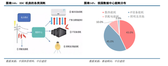 根据《冷板式液冷服务器可靠性白皮书》数据显示,自然风冷的数据中心单柜密度一般只支持8kW-10kW,通常液冷数据中心单机柜可支持30kW以上的散热能力,并能较好演进到100kW以上,相较而言液冷的散热能力和经济性均有明显优势。同时“东数西算” 明确PUE(数据中心总能耗/IT设备能耗)要求,枢纽节点PUE要求更高,同时考虑到整体规划布局,未来新增机柜更多将在枢纽节点内,风冷方案在某些地区可能无法严格满足要求,液冷方案渗透率有望加速提升。目前在AI算力需求的推动下,如浪潮信息、中兴通讯等服务器厂商已经开始大力布局液冷服务器产品。在液冷方案加速渗透过程中,数据中心温控厂商、液冷板制造厂商等有望受益。