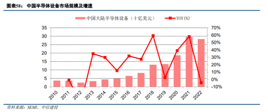 国产化率提升方面,自主可控是大方向,虽然外部制裁不断加剧,国内设备企业在各环节不断突破,近年来国产化率迅速提升。另外,国内设备厂商将加速零部件的国产化,零部件厂商也迎来机遇,而海外客户依赖度相对较高的企业也积极进行海外建厂,提升公司经营抗风险能力,以期海外市场占有率的提升。