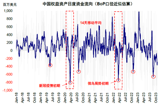 图表18:新冠疫情与俄乌局势初期海外资金曾出现明显抛售压力