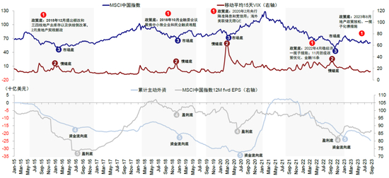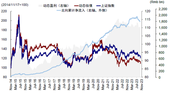 图表23:回顾过去十年市场走势脉络,外资回流往往伴随着国内盈利基本面向好这一条件助推市场走强