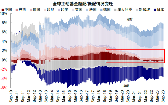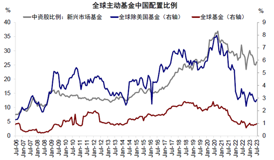 图表5:全球配置主动型资金对于中国市场已处于低配