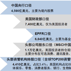 ► 头部基金与个股自下而上汇总:颗粒度更高且便于区分不同类型投资者,但缺点是频率过低且拆解难度大。从自下而上视角,也可以通过汇总头部基金披露的持仓(SEC 13F表格)或主要公司披露大股东信息得到外资持股的细节。这种方法的好处是可以看到具体的持股偏好和不同类型投资者构成,颗粒度更高,但其缺点也显而易见,季度披露过于低频且数据公布滞后,拆分和汇总方法也更加繁琐。
