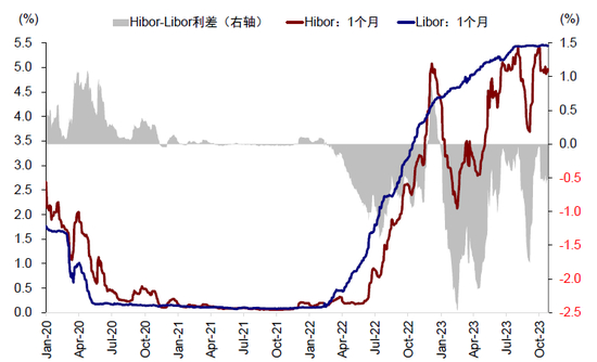 图表17:中美利差以及Hibor-Libor利差等均可以作为用于监测海外流动性的重要指标