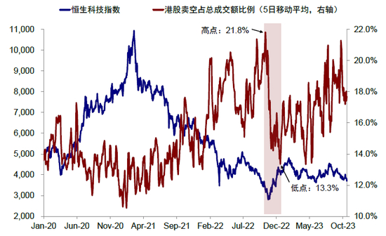 图表26:去年底港股市场强劲反弹期间,卖空成交情况短期内曾出现快速下降,背后交易型资金或为主导