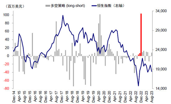 图表29:而同一时期采取多空策略(long-short)的对冲基金却呈现大幅回流中国的迹象
