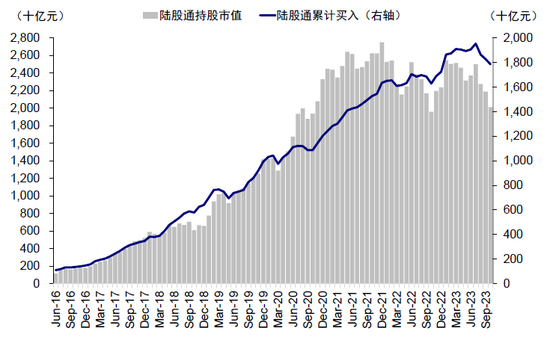 图表4:陆股通当前持有A股市值约为2万亿元