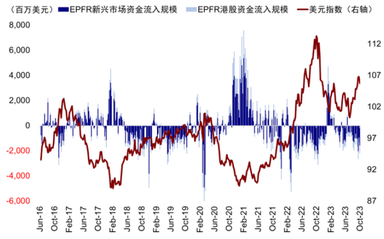 图表15:美元指数走强期间,中国与新兴市场资金流出压力加大