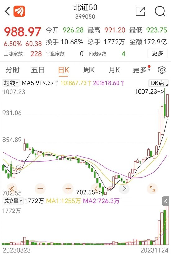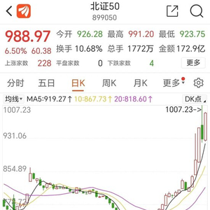 北证50一周飙涨21%、月涨43%