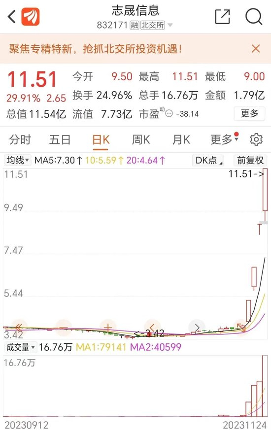对于暴涨原因,顾鑫峰认为,“当前,北交所整体估值低、业绩在增长、流行性在改善、公募在入市、转板在推进,这些因素都在发挥作用”。