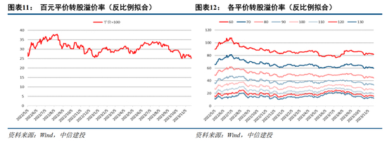 3、转债价格120左右的周期行业转债拔估值。今年以来周期性行业转债估值普遍偏低,尤其是周期类次新债的“便宜”更为明显,转债120的价格其实隐含了转债平价90,转股溢价率30-35%这一区间,我们认为该溢价率一定程度被低估,转债估值或将伴随周期触底进行修复,同时平价偏高也展示出更好的弹性。