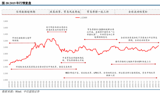 1)2018年底前后市场共有三个重要节点,分别是2018/10/19的初次触底、2018/11/19的反弹高点、2019/1/4的企稳回升,其催化剂分别为一行两会等多位高层发声释放政策积极信号、外围美股大跌及内部孟晚舟事件拖累市场情绪、19年初全面降准+中美贸易会谈推进。尽管在2018年底国内外环境已出现明显改善信号,包括中美双方同意停止加征关税90天、国内政策框架出现明显调整等,但底部区域市场情绪依旧低迷,信心普遍不足。
