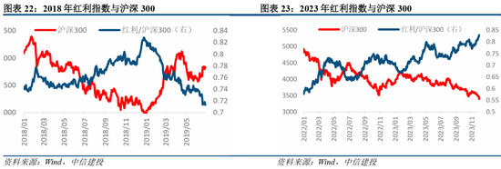 2)行业风格上,最后一跌过程中红利资产虽有波动、但仍在跑赢,而后随19年初市场企稳回升,相对收益持续下行。在2018年市场下行期间(2018.02-2018.09)红利指数获得了明显超额收益,相对沪深300的相对收盘价在7-9月加速上行。随着市场于10月中旬起开启初次触底反弹,红利风格开始跑输;而后市场反弹乏力,美股大跌及内部孟晚舟事件拖累、绝望情绪下红利指数再度凸显避险作用,18年12月相对沪深300的超额收益高达近4%。但在19年年初指数企稳回升后,整体风格表现便开始明显跑输。