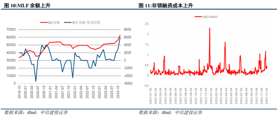 MLF利率下行,MLF余额上行。11月底存量2.68万亿元逆回购将在12月初陆续到期,此外12月15日有6500亿元MLF到期。预计12月央行将继续加大投放以呵护资金面,逆回购预计在特别时点仍有支撑,MLF预计仍将增量续作为银行体系补充中长期流动性。