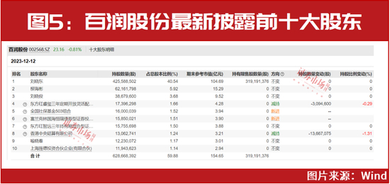 社保基金503组合新进重仓了百润股份,同样以公司12月12日登记在册的数据显示,社保基金503组合持股1600万股,以新进姿态成为了公司的第五大股东(见图5)。