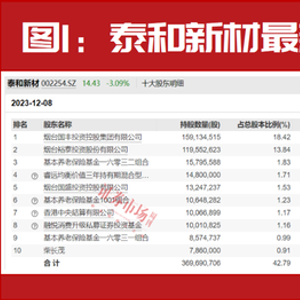 12月12日,泰和新材发布的公告显示,以回购股份决议的前一个交易日12月8日登记在册的数据统计,由赵枫管理的睿远均衡价值三年,以1480万股的持仓继续位居公司第四大股东,持股数相较三季度末微幅减少(见图1)。
