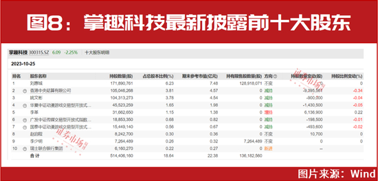如人工智能概念股掌趣科技,公司于10月27日发布公告,以10月25日登记数据显示,瑞士联合银行首次现身公司大股东阵营,以616.03万股的持仓位居第十大股东(见图8)。而自10月25日以来,公司股价已震荡上涨近40%。
