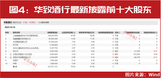 虽然当前市场整体走势偏弱,但在公私募积极布局的同时,“国家队”不甘示弱,社保基金的身影近期即同样频频于上市公司最新大股东名单中显现。如华致酒行,以12月12日登记在册的最新数据统计,社保基金17021组合即继续稳居公司第七大股东,且最新持股较三季度末增加了31.42万股(见图4)。
